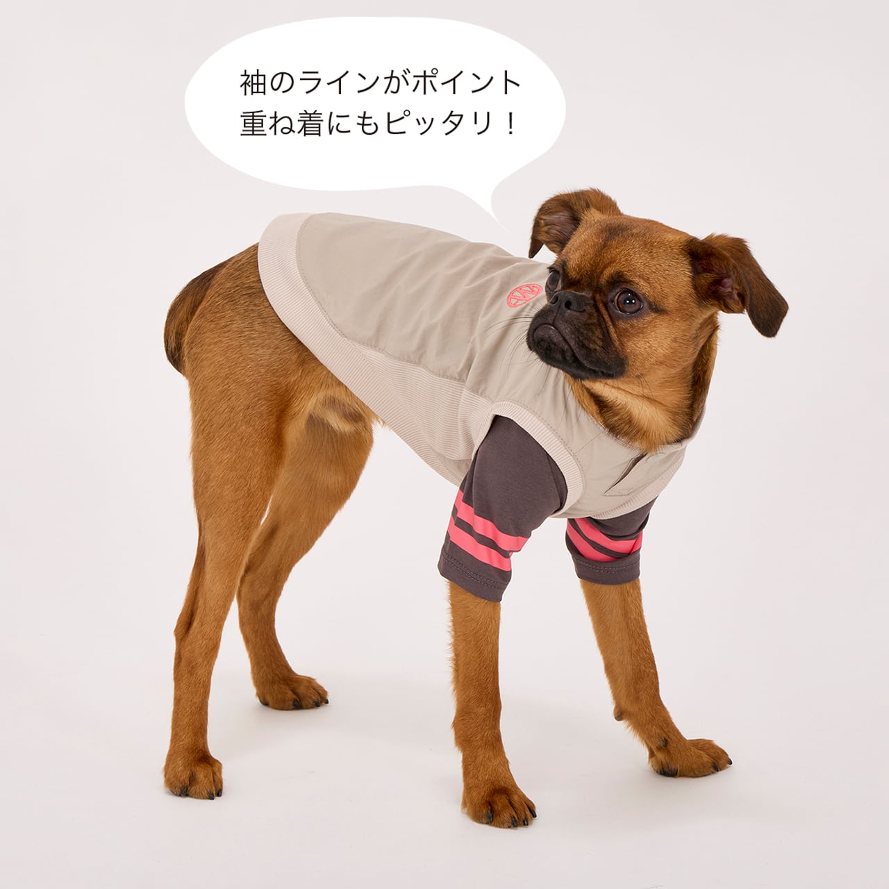 袖のラインがアクセントの日常に溶け込むカジュアルスタイル。