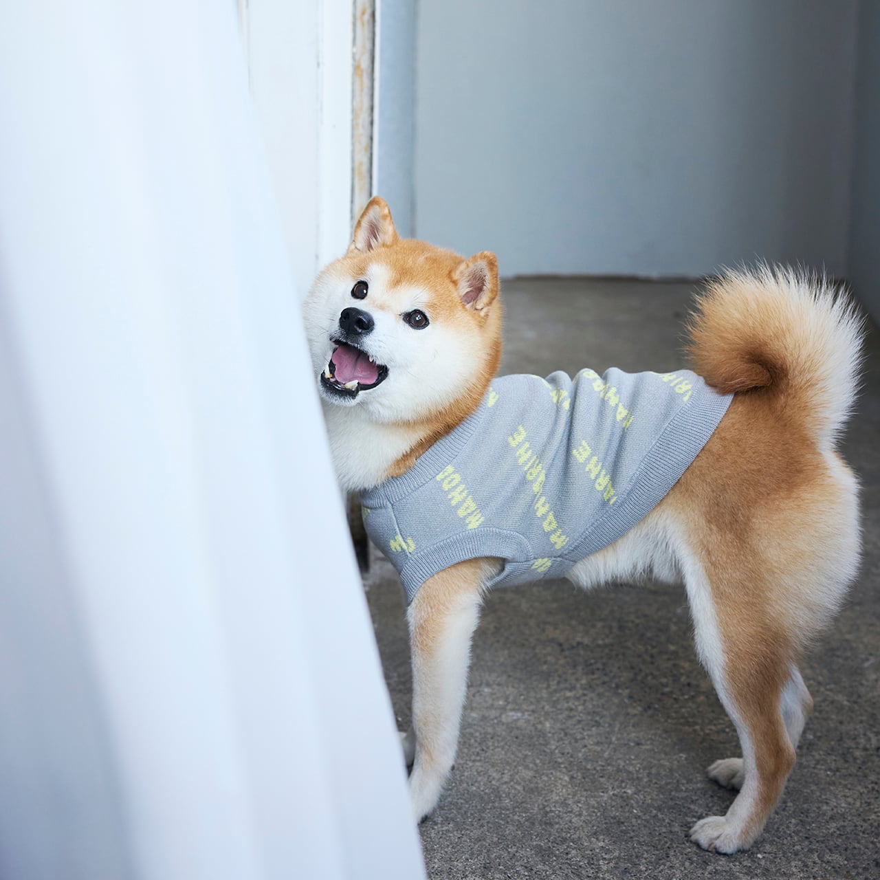 ロゴをあしらった配色が可愛いジャガード織。伸びが良く着脱しやすい袖なし仕様。