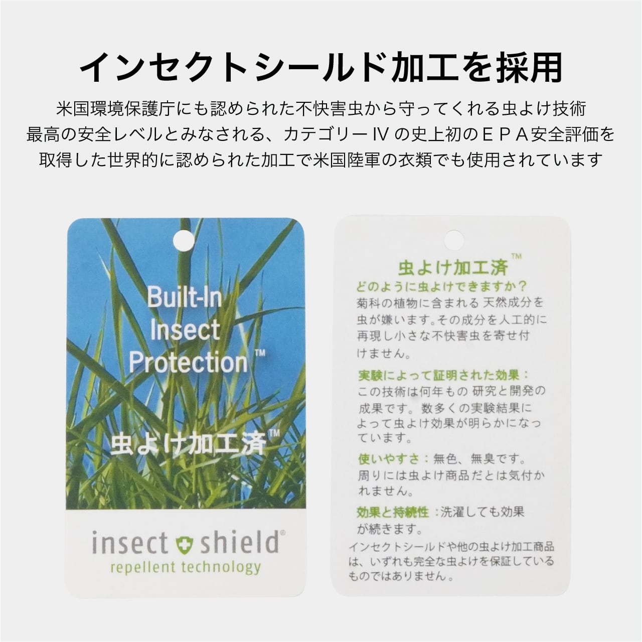 インセクトシールド防虫加工・UPF50+機能を備えたインセクトシールド加工のTシャツです。