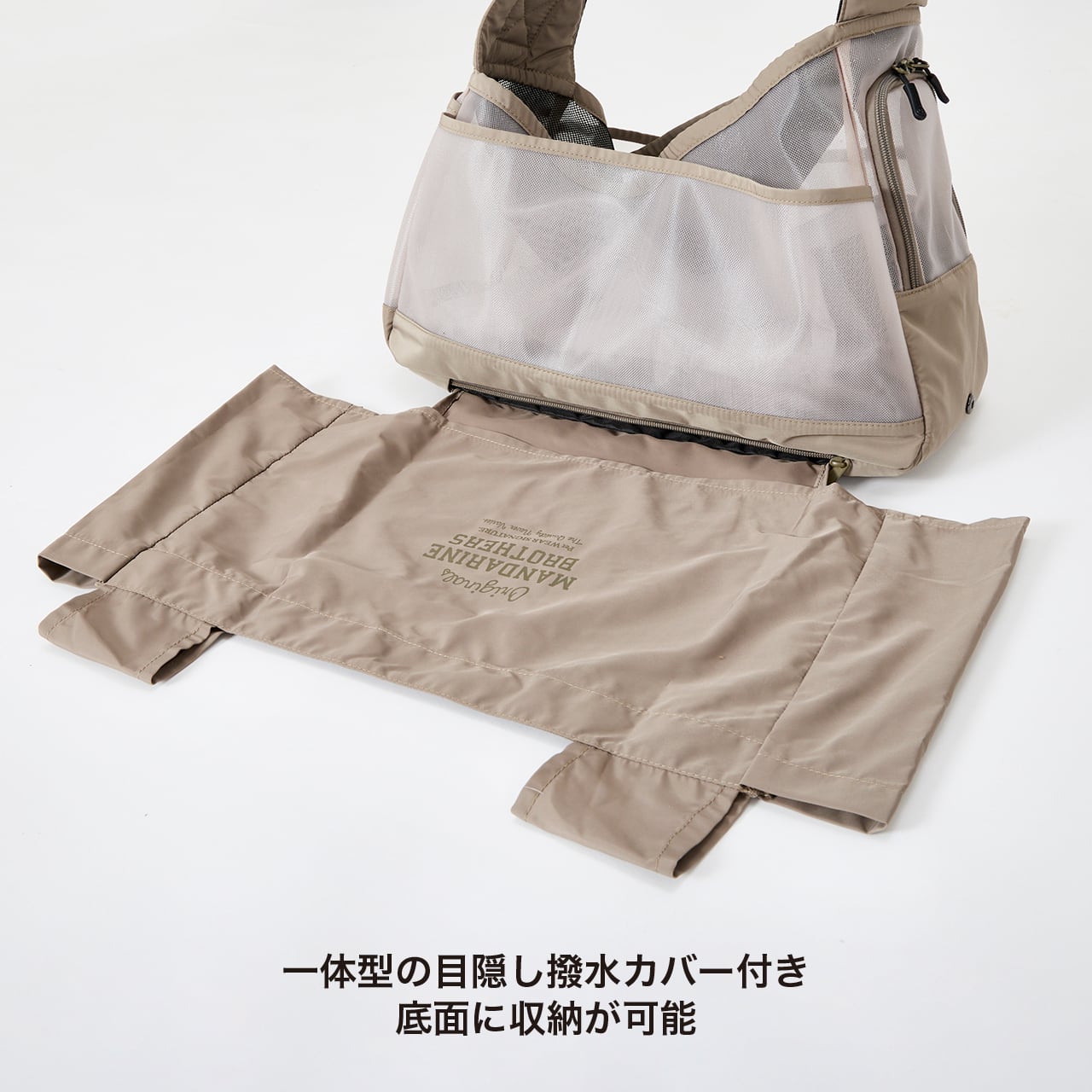 ・底板に収納できる一体型の目隠し撥水カバー付き