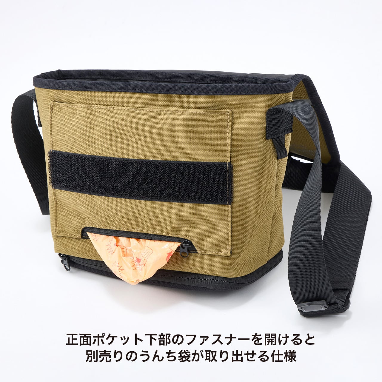 ・正面ポケットのファスナーを開けるとマナー袋(別売り)が取り出せる仕様