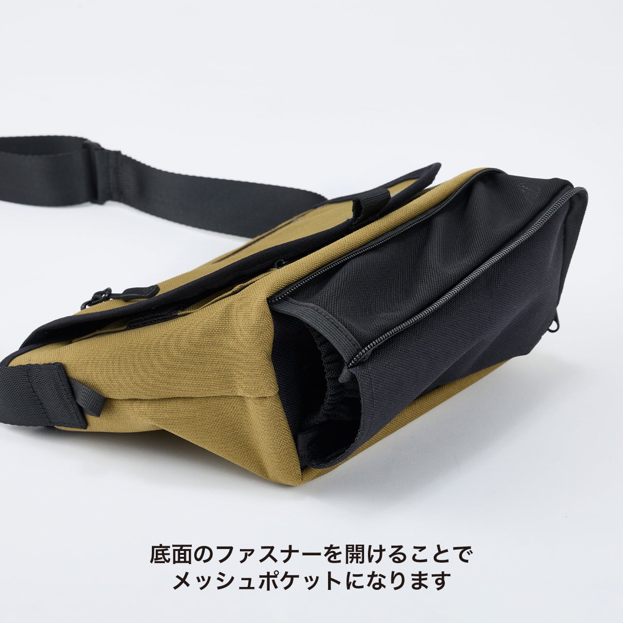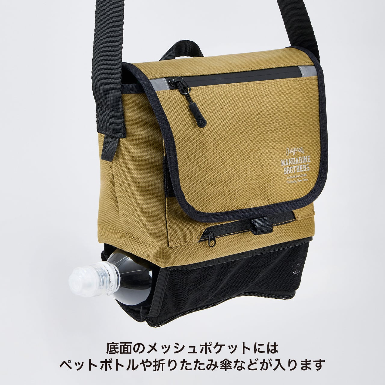 ・底面ファスナーを開けて拡張するとペットボトルや傘ホルダーに!