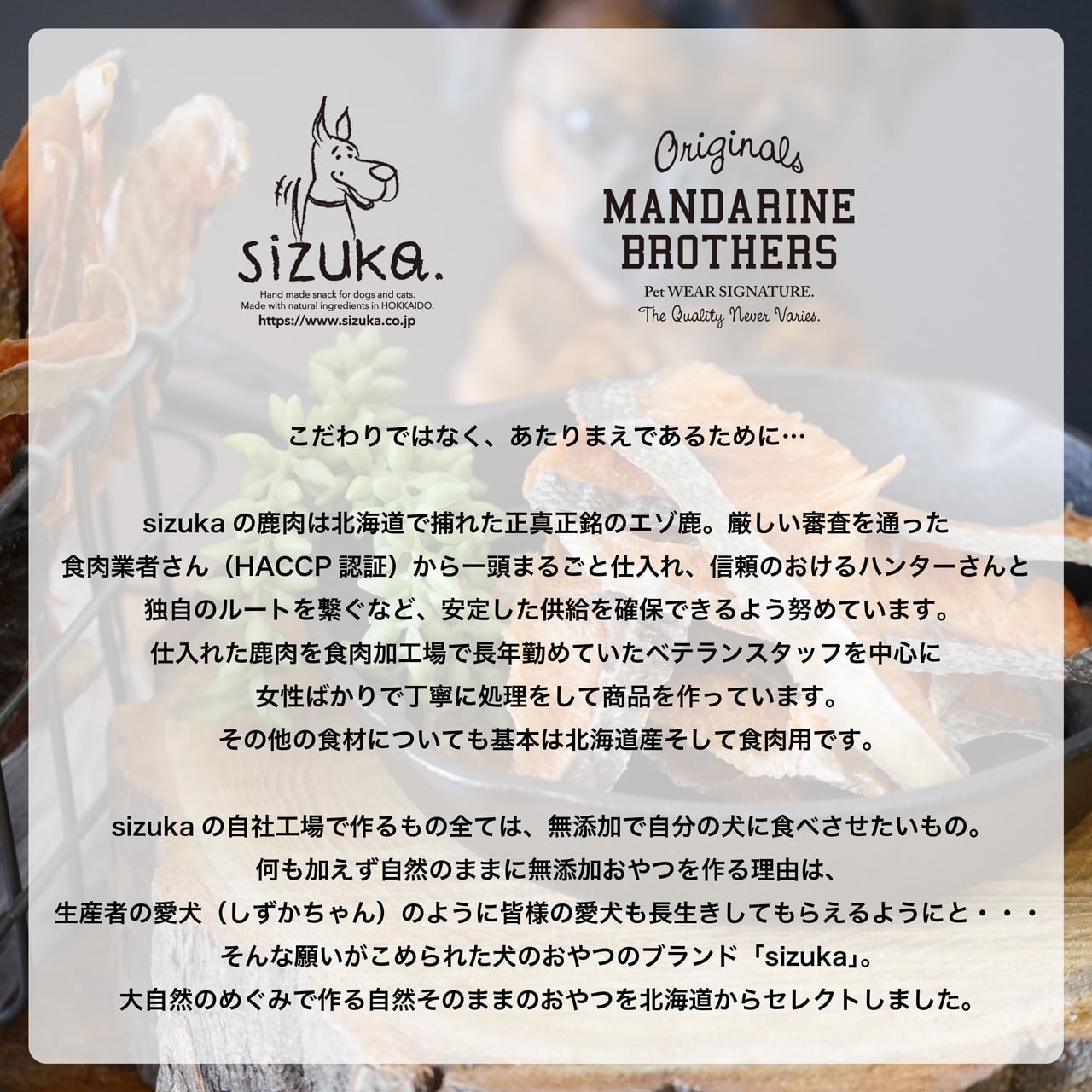 ※sizukaの自社工場で作られる商品は全て無添加ですが、こちらの商品につきましてはsizukaの工場での製造ではありません。 つなぎとして必要最低限の量の添加物が含まれております。愛犬の体格、体調により様子を見ながら与えて下さい。