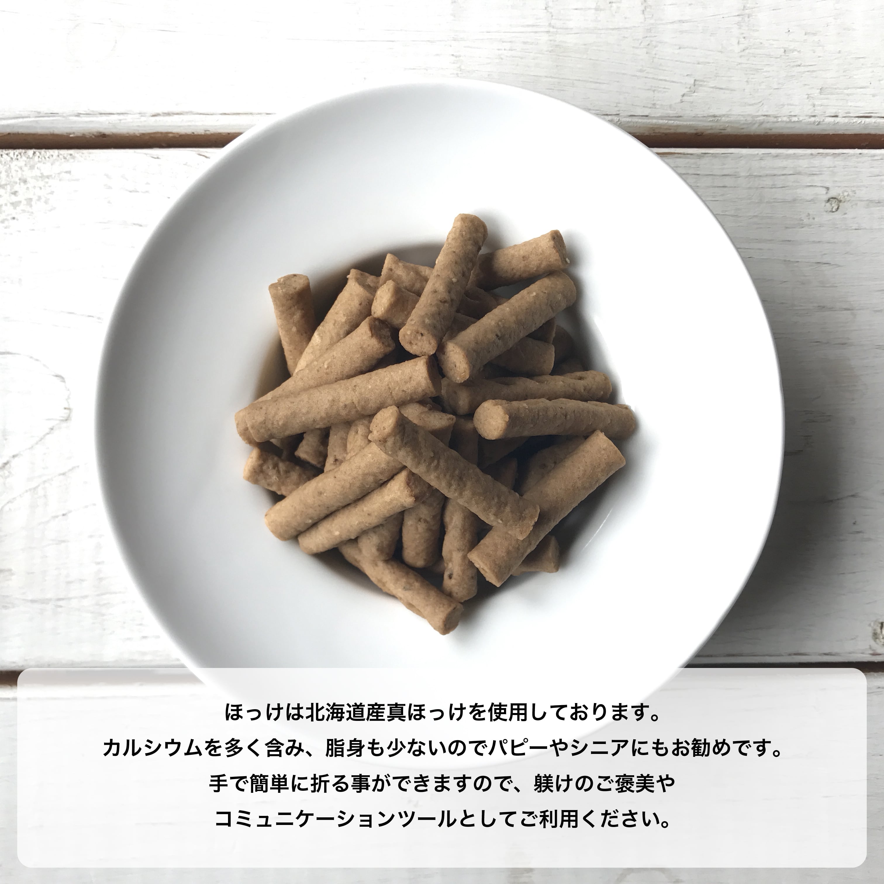 原材料: ほっけ、鶏肉、小麦粉、でんぷん、植物蛋白(大豆)、乳蛋白、食塩、熊笹粉末、ソルビトール、リン酸塩