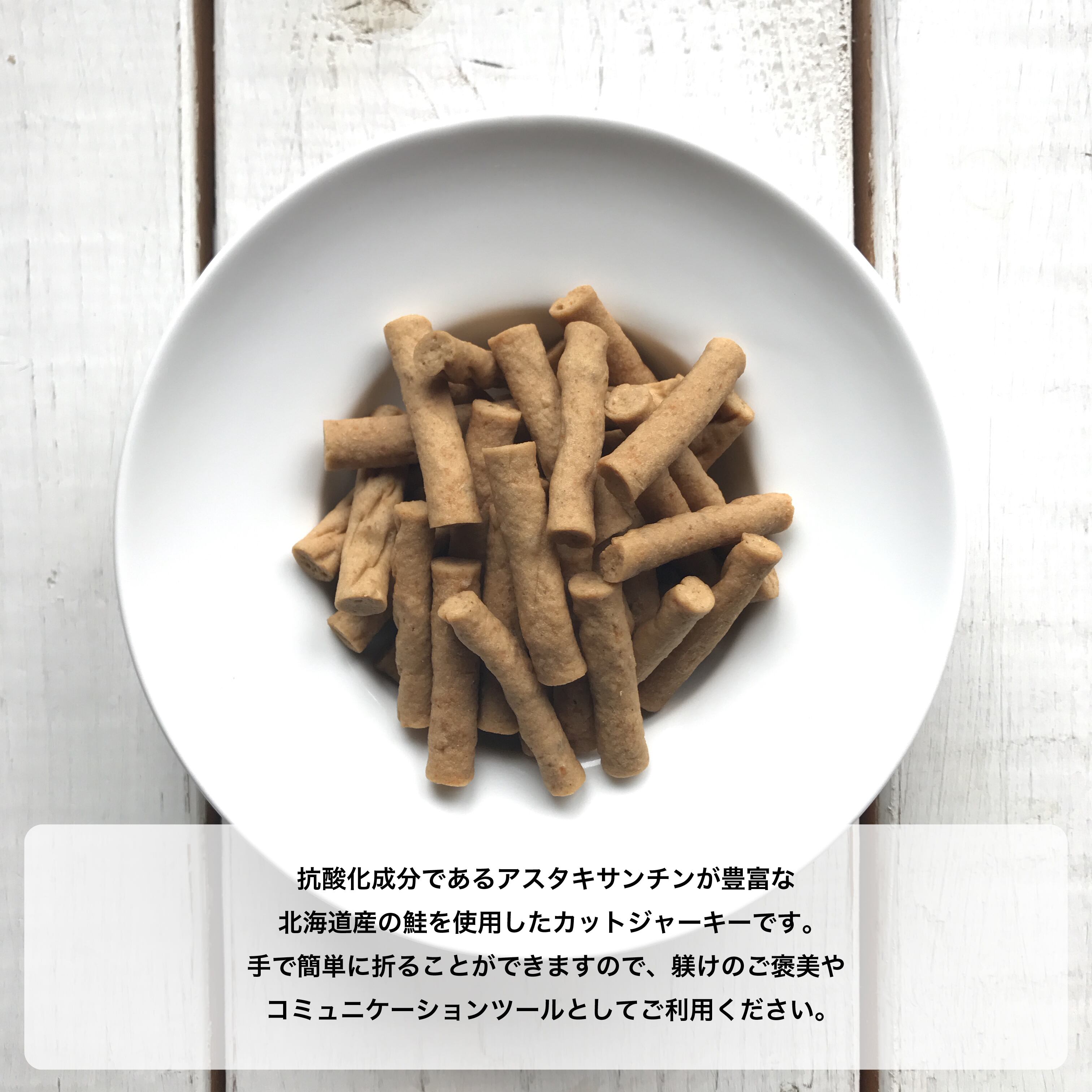 原材料: 鮭(北海道産)、鶏肉、人参、小麦粉、澱粉、植物蛋白(大豆)、乳蛋白、食塩、熊笹粉末、ソルビトール、リン酸塩