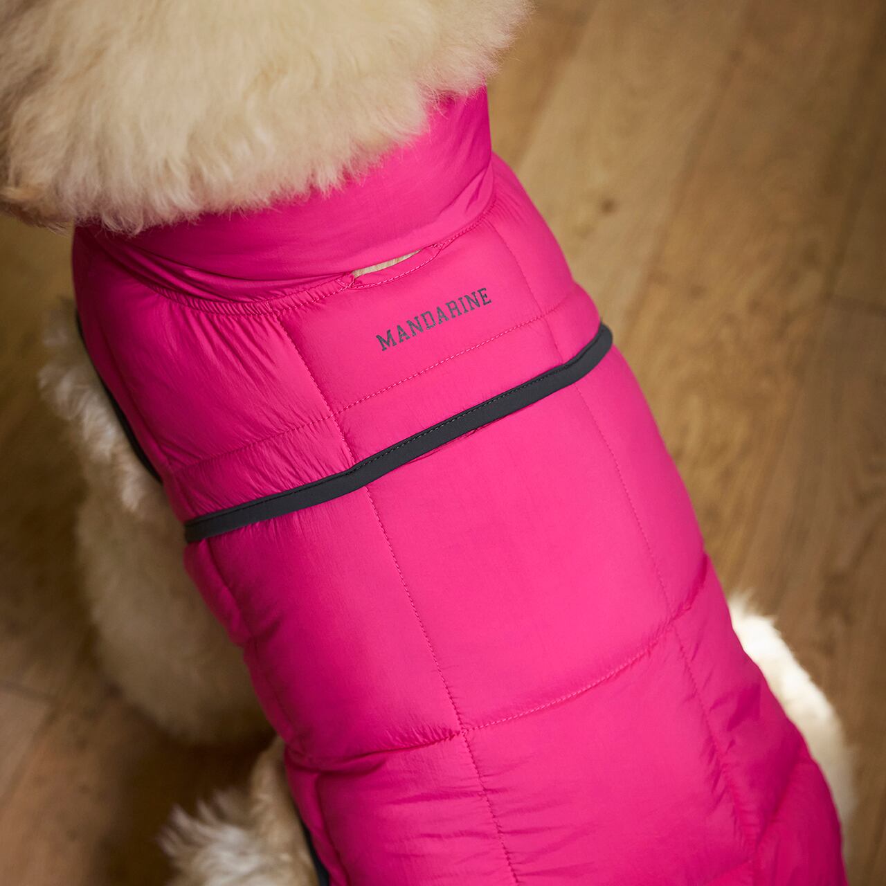 羽毛のようにふわふわで柔らかく超軽量!片足を通してサイドで留めるだけ。 ちょっとした小雨を弾くなめらかな撥水素材で、汚れや毛も付きにくい。コンパクトに持ち運べるパッカブルなので、寒暖差の激しい季節に持ち歩いて愛犬の体温 調整ができる便利な中綿ベストです。