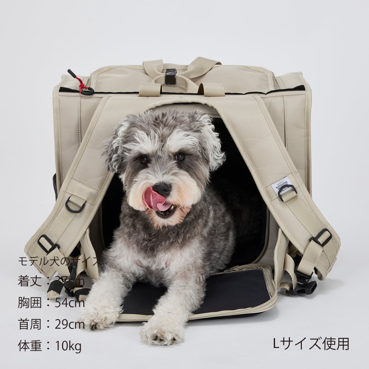 移動中もキャリーの中で伏せができる横型バックパック。