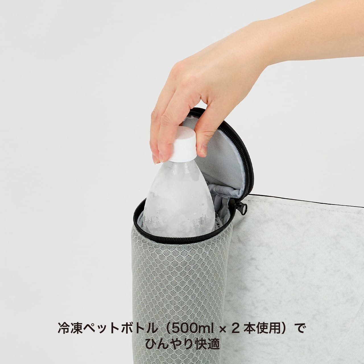 ・冷凍ペットボトル(500ml × 2本 使用)で長時間快適!